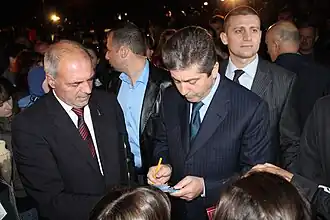 Georgi Sedefchov Parvanov (Bulgarian: Георги Седефчов Първанов, IPA: [ɡɛˈɔrɡi pɐrˈvanof]) (born 28 June 1957) is a Bulgarian historian and politician who was President of Bulgaria from 2002 to 2012. He was elected after defeating incumbent Petar Stoyanov in the second round of the November 2001 presidential election. He took office on 22 January 2002. He was reelected in a landslide victory in 2006, becoming the first Bulgarian president to serve two terms. Parvanov supported Bulgaria's entry into NATO and the European Union.