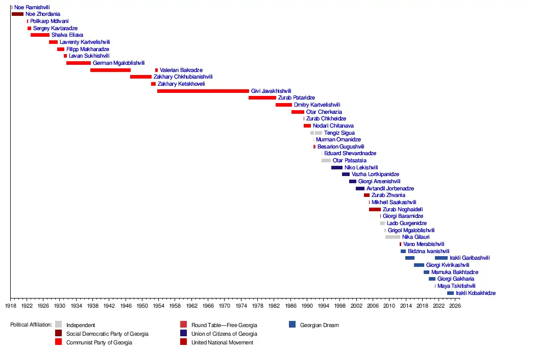 | 2 | | Noe Zhordania (1868–1953) | 24 June 1918 | 18 March 1921 | 2 years, 267 days | Social Democratic Party of Georgia | 1919 | ||