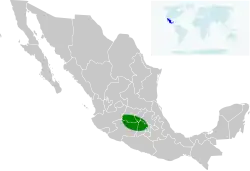 It is endemic to central Mexico and the southwestern Mexican Plateau, in Guanajuato, Michoacán, and México State.
