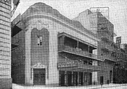 Times Square became the epicenter for large-scale theater productions between 1900 and the Great Depression.[36] Manhattan's theater district had begun to shift from Union Square and Madison Square during the first decade of the 20th century.[37][38] From 1901 to 1920, forty-three theaters were built around Broadway in Midtown Manhattan, including the Plymouth Theatre.[39] The Plymouth was developed by the Shubert brothers of Syracuse, New York, who expanded downstate into New York City in the first decade of the 20th century.[40][41] After the death of Sam S. Shubert in 1905, his brothers Lee and Jacob J. Shubert expanded their theatrical operations significantly.[42][43] The brothers controlled a quarter of all plays and three-quarters of theatrical ticket sales in the U.S. by 1925.[40][44]