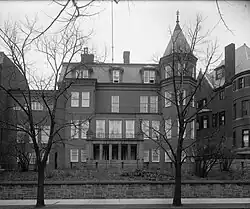 In 1894 the German embassy occupied a new chancery at 1435 Massachusetts Avenue. That building, constructed in 1873 as a private residence on a design by Adolf Cluss, was subsequently expanded to include 70 rooms, and would be occupied by Germany – with wartime interruptions – for nearly 50 years.[3] The opening of the embassy was marked by a formal ball attended by 500 members of the Washington diplomatic corps, along with several members of the United States Congress and Chief Justice of the United States Melville Fuller. Music was provided by a detachment of the United States Marine Band.[4] In this early period the embassy also hosted the return visit of President of the United States Theodore Roosevelt to Prince Henry of Prussia during the prince's official visit to the United States in 1902.[5]