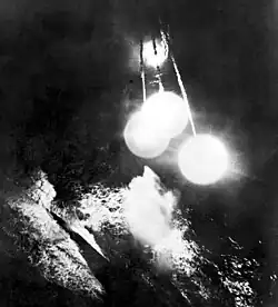 U-955 was located by radar on 5 May 1944, from a British B-24 Liberator, FK226, of 86 Squadron/G RAF piloted by W/O M.G. Moseley and spotted in the moonlight. After several attempts to get the Liberator into a favourable up-moon attack run contact with U-955 was lost. She had apparently made a crash dive after firing at B-24, which she later claimed at shooting down, even though the B-24 was not hit in the encounter.[2]