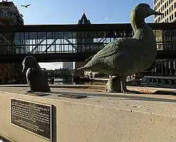 Gertie the Duck is a 4-foot-tall (1.2 m) bronze sculpture of the mallard duck created by sculptor Gwendolyn Gillen. The original cost of the sculpture was $15,000, and it was given to the city by the Eppstein Uhen Architects firm and installed in September 1997. It stands on the northwest side of the Wisconsin Avenue bridge over the Milwaukee River in downtown Milwaukee.[13][14][4] The sculpture is part of the art displays called RiverSculpture!