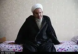 He has been described as one of the most, if not the most, conservative voices in Iran and Shia Islam world.[5] He is known for the highly challenging religious and political positions taken and his ultimate opposition to Caliphate and Anti-Sunni theories advocated in his controversial Friday sermons, which have reportedly drawn criticism from many of the Sunni leaders, Iranian reformists, Pan-Turkists, radical left organisations, Kurdish nationalists with adherence to Sunni tradition and Southern Azerbaijan patriot movement and been accused by "Iranian political satirists in their works."[6] In the aftermath of the 1979 revolution in Iran, he led the militia Javanmardan and fought the Kurds. He was involved in massacre in the village Qarna.[7] After a failed assassination attempt on him in 1981 he was flown to Ireland for treatment.[7] Hassani's devotion to the Islamic Revolution was such that in 1983, several years after the Revolution, he informed authorities of the hiding place of his son, Rashid,[8] a member of the opposition leftist guerilla group Fadayian Khalq, who was then executed by firing squad with Hassani's approval.[6] Hassani is quoted as telling an American journalist, "Abraham didn't sacrifice his son, but I did. Even today, I don't regret it."[5]