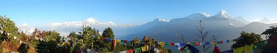 Ghorepani is a village in Myagdi District in the Dhaulagiri Zone of northern-central Nepal. It lies 17 kilometres from the district capital of Beni at an elevation of approximately 2874 m (9429 ft). The village lies within the Annapurna Conservation Area (ACA), requiring a national park permit to visit,[1] and contains a number of "guest houses" and tea houses that provide lodging and meals to mountain trekkers, many of whom spend the night before a pre-dawn trek to the top of nearby Poon Hill (3210m/10531 ft) to watch the sunrise.