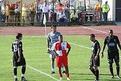 In Italy's next group match, which ended in a 1–0 loss to Costa Rica, he captained his national side for the first time at a World Cup, the fourth World Cup in which he appeared.[367] In Italy's final group game against Uruguay, Buffon saved shots from Luis Suárez and Nicolás Lodeiro, as Italy were reduced to ten men following Claudio Marchisio's controversial red card. Buffon was eventually beaten in the 81st minute by a Diego Godín header, moments after Luis Suárez's bite on Giorgio Chiellini.[368] Buffon was voted man of the match for his performance.[369] Italy finished in third place in their group, and were eliminated in the group stage for a second consecutive World Cup.[370]