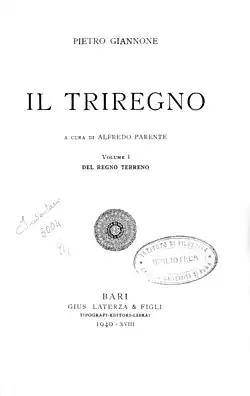 - ^ Merlotti, Andrea (2000). "GIANNONE, Pietro". Dizionario Biografico degli Italiani, Volume 54: Ghiselli–Gimma (in Italian). Rome: Istituto dell'Enciclopedia Italiana. ISBN 978-88-12-00032-6.