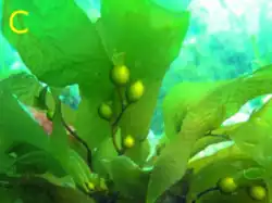 The Giant kelp marine forests of south east Australia is a community extending from the ocean floor to the ocean surface, on a rocky substrate, and has a ‘forest-like’ structure with many organisms occupying its various layers, including pelagic and demersal fishes, sea birds, turtles and marine mammals in addition to the invertebrate organisms that inhabit the sea floor.[4][5] The ecological community is characterised by a closed to semi-closed surface or subsurface canopy of M. pyrifera. This species is a foundation species which provides critical ecosystem services such as, for example, nursery grounds, primary production, and adult habitats for marine organisms,[5] including Chordata, Arthropoda, Annelida, Echinodermata, Bryozoa, Cnidaria, Mollusca, Platyhelminthes, Brachiopoda and Porifera. This is the only kelp which gives this three dimensional structure from the sea floor to the sea surface, and the loss of giant kelp plants destroys this community.[4]