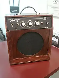 Gibson also produced Kalamazoo bass amplifiers. The tube-driven Bass 30 and Bass 50 were both equipped with a pair of 10" Jensen speakers. These came in different confiurations over time: in one version the speakers were side by side with a flip-out control panel that became flush with the back of the cabinet when not in use; a vertical speaker configuration with a flip out panel; and a vertical configuration with a wood finish slanted panel like the guitar amps. The final models were simply labeled "Bass" without a number. The last run was apparently solid state instead of tube driven.[6]