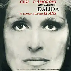 "Gigi l'amoroso" (old-fashioned Italian for 'Gigi the lover') is a song recorded by French Italian singer Dalida. It was written by Michaële, Lana and Paul Sebastian. The song was released as a single in January 1974 with the song "Il venait d'avoir 18 ans" on the B-side.