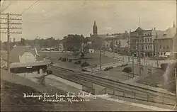 The Boston and Lowell Railroad came to the area in the mid-19th century, and rapid property development followed. By the turn of the century, Gilman Square featured a public green surrounded by four-story commercial buildings.[3]