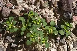 The plant grows in mats very low to the ground.[1] There are only five known occurrences as of 2013.[1] It grows only in very wet years, which rarely occur in the region.