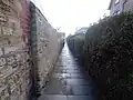 A ginnel is a word in various Scottish and northern English dialects[1] describing a fenced or walled alley between residential buildings that provides a pedestrian shortcut to nearby streets.[2] Ginnels are typically found in suburban areas, and do not contain any business premises, unlike some other types of alley. Other related terms include snicket, tenfoot and snickelway.[3]
