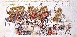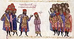 ![]() Maniakes as depicted in the Madrid Skylitzes | |