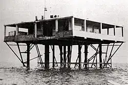In 1958, Italian engineer Giorgio Rosa funded the construction of a 400-square-metre (4,300 sq ft) platform supported by nine pylons and furnished it with a number of commercial establishments, including a restaurant, bar, nightclub, souvenir shop, and post office, with construction being completed in 1967.[6]