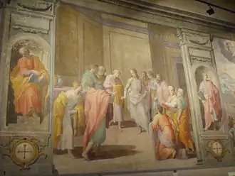 From 1577-1580, he aided Naldini in the fresco decoration of the Altoviti Chapel in the church of Trinità dei Monti in Rome. He returned to Florence, to assist Alessandro Allori in the decoration of Vasari's Gallery for the Uffizi. Under the patronage of Cardinal Alessandro de' Medici, who later became the short-lived Pope Leo XI, Balducci was engaged from 1588-1590 in painting a cycle of frescoes depicting scenes from the Life of Christ for the Oratorio di Gesù Pellegrino, located in Via San Gallo of Florence. From 1590-1591, he worked with Naldini in the decoration of Volterra Cathedral, painting in the Serguidi chapel a Miracle of Loaves and Fishes.