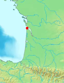 The Île Sans Nom which appeared in 2009 following Cyclone Klaus lies around 1 mile (1.6 km) east of Cordouan Lighthouse.[6]