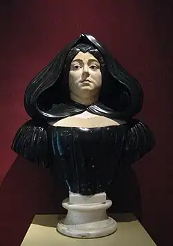 Giuseppe Antonio Torricelli (1662–1719) was an Italian sculptor and gem-engraver of the late Baroque active in Florence, often using colorful and semi-precious pietra dura, a type of workmanship that became a specialty of Florence. He initially trained with Gaetano Giulio Zumbo. During his lifetime, worked under the supervision of Giovanni Battista Foggini, the master sculptor of the duchy. His masterpiece is the elaborate bust of Vittoria della Rovere (made from chalcedony (face), sardonyx (pupils), Sicilian jasper (lips), and black touchstone (bodice and veil). This project alone took nearly two decades to complete (1696–1713). It ultimately lacks the majesty of marble, and has the appearance of a wax museum portrait. It is found presently in Museo degli Argenti in Florence.