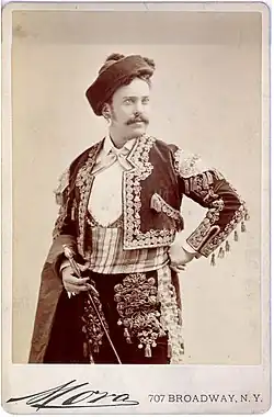 Giuseppe Camillo Carlo Del Puente was born in Naples, Italy, to Francesco Del Puente and Vincenza Vastarelli.[2] From a noble family of Spanish origin, Giuseppe eventually inherited the title Marquis de Murcia.[3] Del Puente began his studies at the Conservatory of San Pietro a Majella as a young boy, originally devoting himself to cello under Gaetano Ciandelli.[4] Upon discovering a fine baritone voice, he studied singing under Alfonso Guercia and Domenico Scafati,[5] himself a student of Alessandro Busti and the castrato Girolamo Crescentini. When at age 17 he joined Garibaldi's army, his voice was still that of a soprano. After a year in the army, he returned to the Conservatory. By this point his voice had changed to what he thought was that of a tenor. But it dropped still lower, until it seemed to even out at a baritone.[6] It was with that voice that he finished his musical studies over the course of two years.