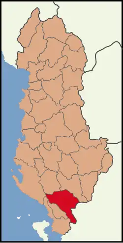 Gjirokastër District (Albanian: Rrethi i Gjirokastrës) was one of the 36 districts of Albania, which were dissolved in July 2000 and replaced by 12 counties. It had a population of 55,991 in 2001, and an area of 1,137 km2 (439 sq mi).[1] It contained a large Greek ethnic minority.[2][3] It is in the south of the country, and its capital was the city of Gjirokastër. Its territory is now part of Gjirokastër County: the municipalities of Gjirokastër, Dropull and Libohovë.