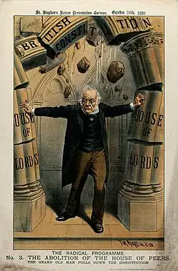 Gladstone was known affectionately by his supporters as "The People's William" or the "G.O.M." ("Grand Old Man", or, to political rivals "God's Only Mistake").[3] Historians often rank Gladstone as one of the greatest prime ministers in British history.[4][5][6][7]