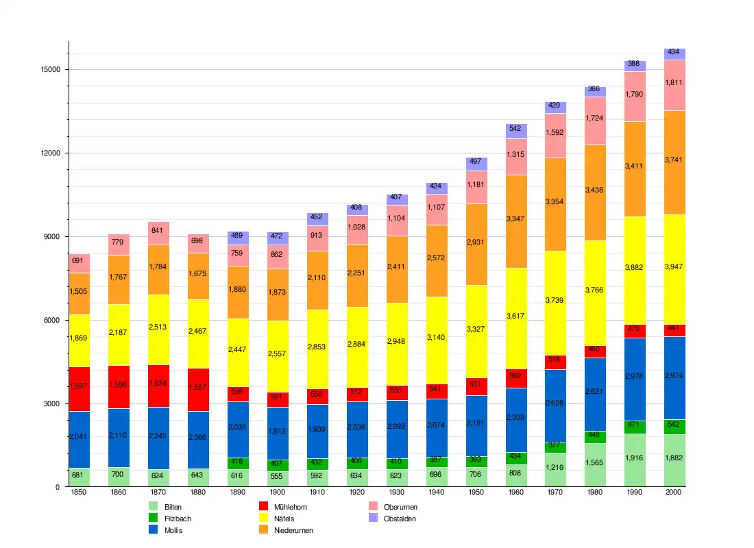 | Localities | Bilten, Filzbach, Mollis, Mühlehorn, Näfels, Niederurnen, Oberurnen, Obstalden, Ziegelbrücke. |