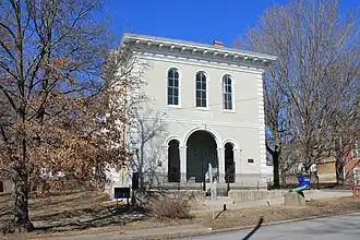 Glasgow Public Library, also known as Lewis Library, is a historic library building located at Glasgow, Howard County, Missouri. It was built in 1866, and is a two-story, Italianate style brick building. It features round-arched windows and doors, and a high bracketed cornice with its broad overhanging roof. It is the oldest Missouri library in continuous use.[2]: 3–4 It was originally constructed and used by the now defunct, Lewis College, and was listed on the National Register of Historic Places in 1969.[1]