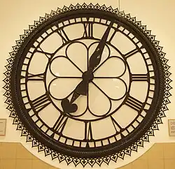 It was a large station with 12 platforms and two impressive semi-cylindrical glass/iron roofed train sheds. The station was closed on 27 June 1966[1] as part of the rationalisation of the railway system undertaken by the British Railways Board chairman Dr. Richard Beeching; upon closure its 250 trains and 23,000 passengers a day were diverted to Central.[4] The roofs of the structure were demolished, despite protests, in 1977.[5] The clock that was suspended from the roof of the station was saved from destruction and is now on display in Cumbernauld Town Centre.[6]