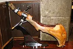 This is a list of notable hams and ham products. Ham is pork that has been preserved through salting, smoking, or wet curing.[1] It was traditionally made only from the hind leg of swine, and referred to that specific cut of pork.[2] Ham is made around the world, including a number of highly coveted regional specialties, such as Westphalian ham and jamón serrano.