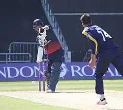 In India he played for Delhi Daredevils in 2012 before being bought in the 2013 IPL auction by Mumbai Indians, becoming the most expensive purchase at the auction, commanding a price of US$1 million.[26] In 2014 he was bought by Kings XI Punjab, making scores of 95, 89, 95 and 90 runs during the season. In 16 games he had the season's third highest aggregate of runs scored with 552 runs at an average of 34.50 runs per innings[27] and was retained by the side for the following two seasons.[28] He returned to play for Delhi ahead of the 2018 season[29] He again had a poor season, scoring 142 runs at an average of 14 and not passing 50 once.[30] before being the subject of a bidding war between Delhi and Punjab ahead of the 2020 season, eventually being bought by Punjab. In 2021, he was bought by Royal Challengers Bangalore after another bidding war, this time with the Chennai Super Kings,[31] and finished the season as the team's highest scorer, with 513 runs.[32] He was retained by the side for the 2022 season.[33]