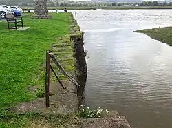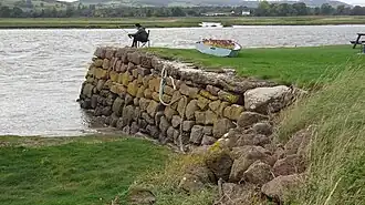 The larger sailing vessels would lay up at Glencaple over the stormy winter months.[9] The stone quay itself has sets of iron moorings bollards and wood moorings were located along the shingle and mud bank downstream showing that boats could safely lie up there as well.[10] A set of stone steps on the north side lead down to the quay base.