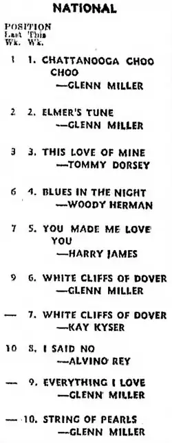 - ^ Carter, Dick (January 3, 1942). "On the Air: Glenn Miller". Billboard. Retrieved October 26, 2014.