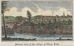 As a halfway point between Fort Edward and Fort William Henry, the falls was the site of several battles during the French and Indian War and the Revolutionary War. The then-hamlet was mostly destroyed by fire twice during the latter conflict, forcing the Quakers to abandon the settlement until the war ended in 1783. Fire also ravaged the village in 1864, 1884, and 1902.[6]