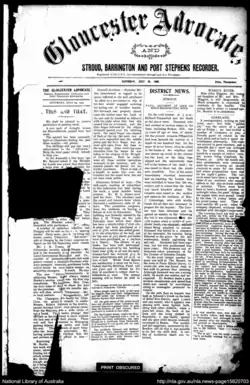 - ^ "The Gloucester advocate [microform]". Catalogue. State Library of NSW. Retrieved 10 March 2014.
