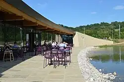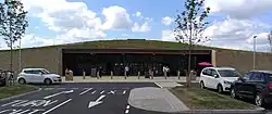 One of the factors that helped the development gain planning permission was the inclusion of a green roof in the design. The 4,000 m2 (43,000 square feet) green roof was designed to disguise the new service station as part of the landscape. With the Cotswolds on one side and Robinswood Hill on the other, every effort had to be made to reduce the aesthetic and biological impact the project had. A bespoke seed mix was used which was intended to mimic the natural vegetation of the surrounding landscape. Species such as birdsfoot trefoil and yellow rattle were included to attract UK native pollinators such as bees and butterflies.[15][16]