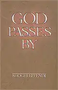 God Passes By, written by Shoghi Effendi, head of the Baháʼí Faith in the first half of the 20th century, is a book which provides a historical summary of the first century of the Baháʼí Faith, from 1844 to 1944.[1] While historical episodes are recounted in some detail, "God Passes By" is particularly notable for the significance Shoghi Effendi assigns to events in the history of the Baháʼí Faith, and the interpretation he gives to various episodes.