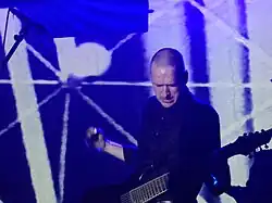 Mike Patton of bands Faith No More and Mr. Bungle is a fan of Godflesh's sound, calling them "ridiculously heavy" and "one of the few bands that can make you wonder whether or not your batteries are running out on your stereo."[173] Patton invited Broadrick to join Faith No More as guitarist after Jim Martin left the band in 1993.[174][23] He was also asked to join Danzig shortly after Godflesh toured the U.S. with them and Type O Negative in 1994.[123] In both instances, Broadrick declined the offer in favour of continuing to reside in the United Kingdom and work on his own music.[175] Other artists such as Metallica, Fear Factory, Korn, Isis, Neurosis, Pelican, Prurient, Helmet, Prong, Nailbomb, Code Orange, Mortiis, Devin Townsend and Converge were inspired by Godflesh,[d] and in 2014 MetalSucks wrote, "Everyone from Nine Inch Nails to Fear Factory to Batillus probably owes these dudes a couple of checks".[193] Despite acclaim among critics and fellow musicians, Godflesh have only experienced minimal commercial success; in 2002, shortly before the band dissolved, Broadrick said he had no illusions about selling out stadiums.[86] The goal of Godflesh, according to him, was simply to put out good albums.[86]