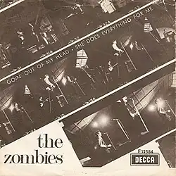 The release of "Goin' Out Of My Head" was a highlight in the Zombies career, as they had gotten incredibly popular in the Philippines.[13] This meant that they had started earning money as well as their commercial success once again started increasing.[13] In hearing this, Decca, who had been keeping "Goin' Out Of My Head" in their vaults for around half a year, decided to release it.[14] So on 17 March 1967, "Goin' Out Of My Head" was released in the UK.[15] As their contract with Parrot Records had expired, the song never got a release in the US.[15] It was backed by "She Does Everything For Me", which was a song Argent had composed.[12] Like all singles by the Zombies after "Tell Her No", it failed to reach Record Retailer.[6] This was to the disappointment of Decca, who thought it would become a big hit, while the Zombies did not attempt to promote it.[9]