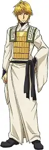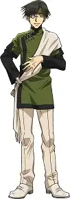 Shien (紫炎): One of the heavenly people who act together with. He's the type who doesn't like useless killing, but he's completely unforgiving of those who get in the way of his goals or attack him. His weapon is a two-sword whip of light that he carries in his chest, and has the power and speed to cut an enemy in two without looking back.[12]