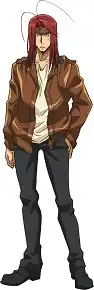 Kougaiji (紅孩児): The son of Gyumaoh and Rasetsunyo (an evil female demon), Kougaiji inspires great loyalty in those who serve him. As for Kougaiji's loyalties, they lie with his parents ... his real parents, and while Gyokumen would like Kougaiji to view her as his mother, she isn't, and Kougaiji is not about to forget that.[8] He deeply cares for other yōkai, but has never displayed any ill feelings toward humans. Despite that he's willing to let countless humans and yōkai die if it means bringing his mother back. A notable aspect that's added in the anime is that Kougaiji's sense of pride is greatly exaggerated at points. He often passes up chances where he could easily defeat the Sanzo part when they've been weakened in some way, desiring to defeat them when they're at full strength, and once attempted to singlehandly fight Goku when his power limiter was removed, despite nearly dying when he last fought him in that state. Of everyone he's been around, he's been shown to care for Lirin the most and often attempts to keep her out of battles. He wields power over fire and the ability to summon powerful fiends. He's also a highly skilled hand-to-hand fighter. He generally serves as Goku's opponent. In the Japanese version he is voiced by Takeshi Kusao, with the exception of the first OVA series, in which he was voiced by Yuuki Matsuda. In the English version, he is voiced by Vic Mignogna in the original series and Blast.[2] In Reload and Gunlock, he is voiced by Terrence Stone. In ZEROIN, he is voiced by Alejandro Saab.