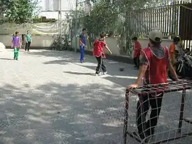 Gol Koochik (گلکوچیک in Persian spoken language, translates as "small goal" or small net) is a variation of street football that has been popular in Iran. The goal is approximately 100 x 60 cm in size and the ball is light-weight which can look like a makeshift ball. Given the limited space and the high density of player in the small-sized field, supreme dribbling skills are required for success in the game and players behoove to learn to maneuver the ball more quickly than normal football fields.[1][2]