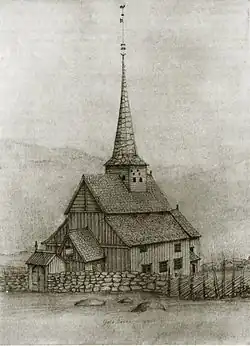 The church has been dendrochronologically dated to from 1157 to 1216. When the city built a new church around 1880, it was decided to demolish the old stave church. It was saved from destruction by the Society for the Preservation of Ancient Norwegian Monuments (Fortidsminneforeningen), which bought the materials in order to re-erect the church elsewhere. The remains of the original medieval construction were documented before transport. Original murals and medieval artifacts survived. Most of the main construction remained intact and in original form, although practically all of the exterior dates from the 1884–1885 restoration.[3][4]