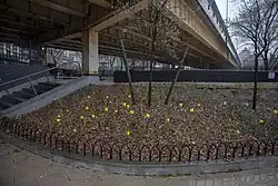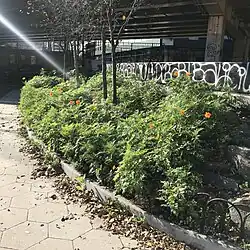 Located under the Brooklyn Queens Expressway, the park originated as a D.I.Y skate park known as Fat Kid or the Fat Kid spot.[4][5] In 2013, work began on a 3.7 million dollar redesign of Golconda playground which included a redesign of the old D.I.Y skate park into a public skate park that flows with the design of the entire park.[4] In 2016, the New York City Parks Department opened a remodeled Golconda Playground, including a redesigned skatepark.[4] Steve Rodriguez worked with the Parks Department and the skating community to advise the design of the skate park.[3]