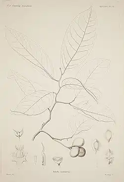 | Botanical illustration of Goniothalamus monospermus (using basionym Richella monosperma) showing leavers, branches, flower parts, fruit and seeds.[1] | |