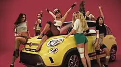 The visual opens with a hand inserting a coin into a machine. Subsequently, a space full of cameras is shown,[28] with one of them displaying Pitbull rapping in front of a blue backdrop. Next, Inna makes appearance performing a choreography accompanied by several background dancers; she wears a blonde wig and a white jumpsuit. Over the rest of the visual, the cameras display different words or phrases, to which Inna and the backup dancers are dressed to.[13][15] The clip portrays them playing baseball, golf, paintball, acting as cheerleaders and being engaged with barbie dolls among other activities.[3][26] A scene from the visual portrays the crowd leaning over a Fiat car; American singer Jennifer Lopez used the same model for the music video of her 2011 single, "Papi".[15]