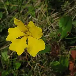 Goodenia elongata, commonly known as lanky goodenia,[2] is a species of flowering plant in the family Goodeniaceae and is endemic to south-eastern Australia. It is an erect or ascending herb with lance-shaped stem leaves, and yellow flowers arranged singly or in racemes.