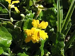 Goodenia hederacea, commonly known as forest goodenia or ivy goodenia,[2] is a species of flowering plant that is endemic to eastern Australia. It is a prostrate to ascending, perennial herb with linear to elliptic or round leaves, and racemes of yellow flowers.