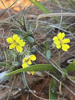 This goodenia grows in sandy soil in the Kimberley region of Western Australia and the northern part of the Northern Territory.[2][3][10] Variety glandulosa is only known from the collection made by Norman Byrnes near Derby in 1967.[9]