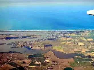 ![]() Goolwa South located on the oceanic coastline between the left-hand side of and the middle of the image. | |||||||||||||||