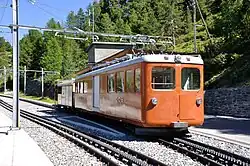 The Gornergrat Railway (German: Gornergrat Bahn; GGB) is a mountain rack railway, located in the Swiss canton of Valais. It links the resort village of Zermatt, situated at 1,604 m (5,262 ft) above mean sea level, to the summit of the Gornergrat. The Gornergrat railway station is situated at an altitude of 3,089 m (10,135 ft), which makes the Gornergrat Railway the second highest railway in Europe after the Jungfrau, and the highest open-air railway of the continent. The line opened in 1898, and was the first electric rack railway to be built in Switzerland.[1][2][3] The Gornergrat is a starting point for many hikes, as it lies surrounded by 29 peaks rising above 4,000 m (13,123 ft) in the Alps and several glaciers, including the Gorner Glacier (which is billed as the second longest glacier in the Alps). At the end of the line on Gornergrat, the Matterhorn is visible on a clear day. It is also a popular skiing area.[3]